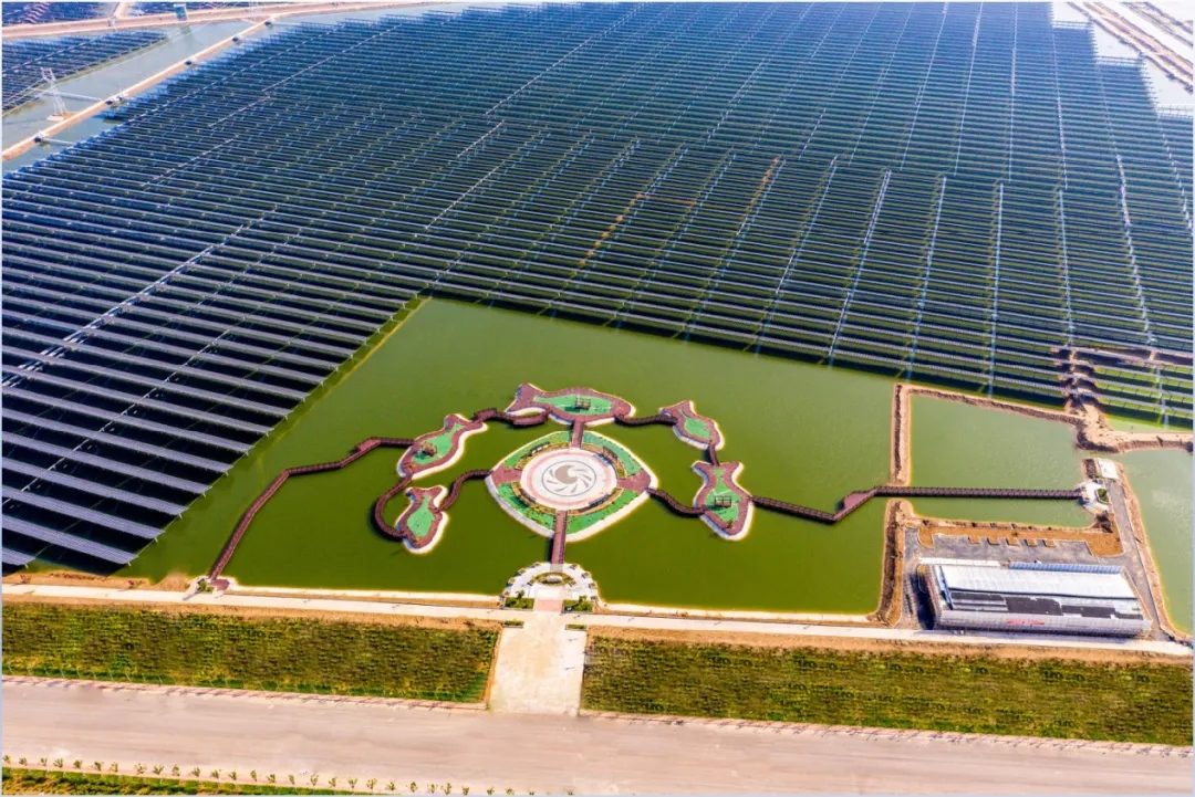 为实现企业发展与国家政策同频共振,通威新能源紧紧围绕“十四五”规划、乡村振兴战略谋篇布局,充分发挥团队主观能动性和创造性,积极塑造核心竞争力,一直秉持“水上产出清洁能源,水下产出健康水产品”的双绿色发展路径,“渔光一体”模式不断转型升级,并坚持“渔光一体”的新农村产品开发,创新提出了定位更高要求、更高价值的三产融合“渔光小镇”,并聚焦三产融合的“渔光小镇”基地项目规模化开发和打造。一产新渔业,解决“农业、农村、农民”问题;二产光伏发电,解决“碳达峰、碳中和”问题;三产乡村旅游,解决“美丽乡村”问题。此次通威东营渔光一体生态园成功创建国家AAA级旅游景区,标志着通威“渔光小镇”的打造已经迈出了跨越性的步伐,三产融合的“渔光小镇”必将为实现乡村振兴与碳中和提供“通威方案”。